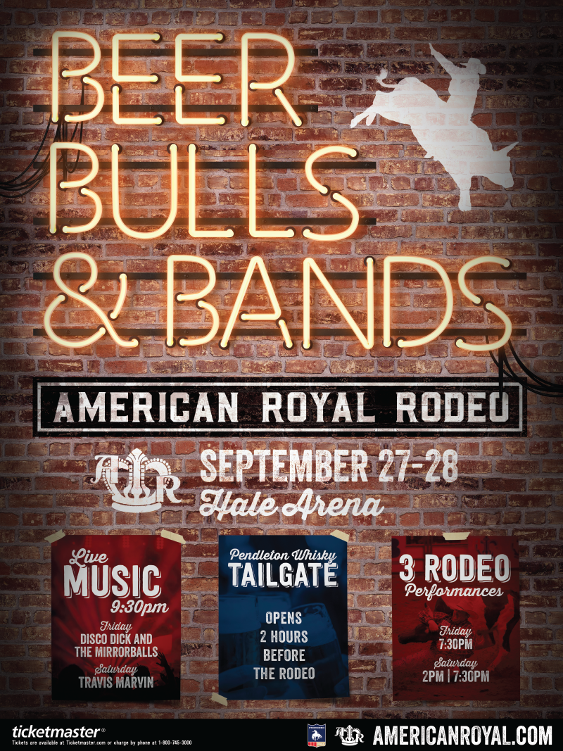 The concept first appeared on digital billboards around town, so we were able to oscillate our advertising over four different billboards, each with a different headline to emphasize different aspects of the event. We shortened “Beer, Bulls & Bands” to “Bulls & Bands”, created one that said “Broncs & Beers”, one that read “Live Music Live Action”, and one read “Cowboys & Cocktails”. Each of these headlines combines one rodeo word (“Bulls”, “Broncs”, “Action”, “Cowboys”) with one non-rodeo word (“Bands”, “Beers”, “Music”, “Cocktails”), so we felt we thoroughly conveyed that there’s more to the American Royal ProRodeo than the ProRodeo.
