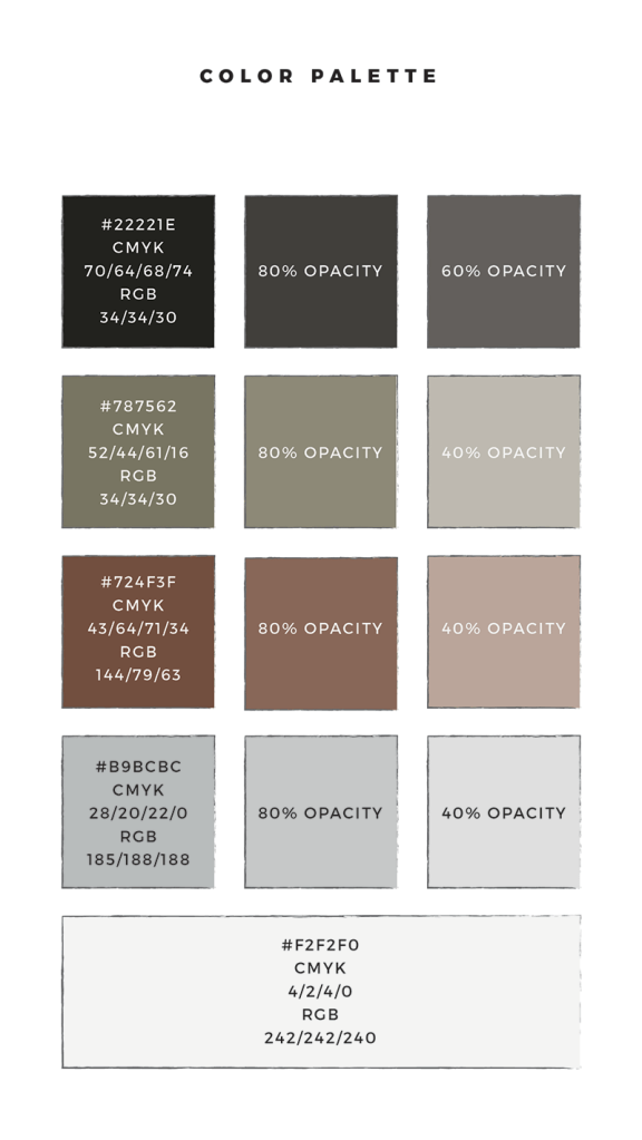The client provided me with some beautiful imagery from her favorite photographer to help me choose a color palette that represented her company best. She wanted it to be a natural/neutral palette.