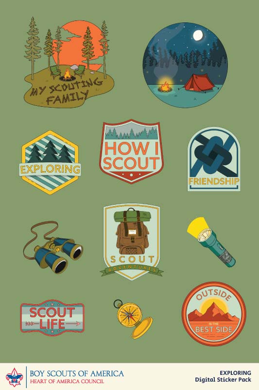 The lead art director on this account had planned for these sticker packs to be downloadable from the website, and then each would require a third-party app to apply the sticker to an image before it would be posted in social media sites like Facebook or Instagram. This would work, but it didn’t seem ideal to me, so I decided to do some research. I discovered that Facebook and Instagram source their stickers from Giphy.com, and that we could create an account for the Boy Scouts of America and apply for a “brand channel”, uploading our stickers (and applying the right hashtags) there so that users would be able to access and apply the stickers directly from Facebook and Instagram without the use of a third-party app.