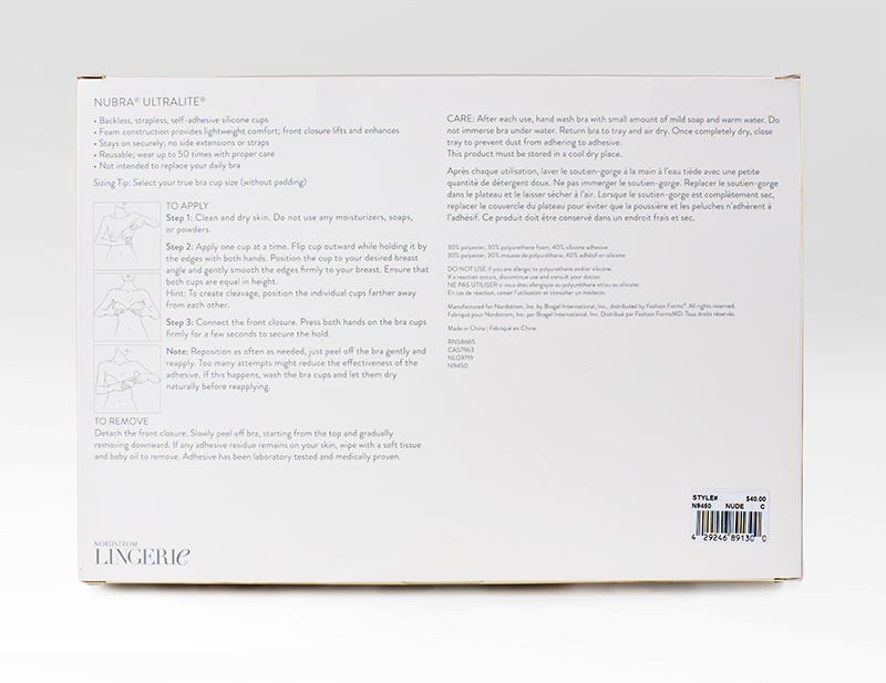 In tandem with their unveiling of their new brand, Nordstrom Lingerie, Nordstrom wanted a packaging re-design, more than skin-deep; they wanted the full dielines and packaging materials to change, to more accurately reflect their brand. There were also some problems they had noted; the packaging on the shelves was taking heavy wear, due to customers repeatedly opening the packaging to see the product.
