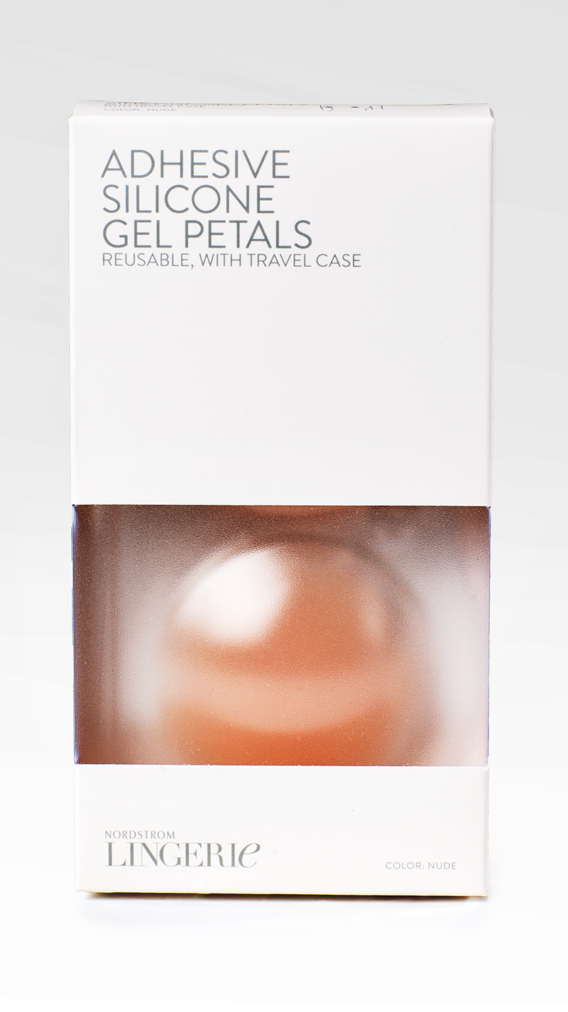 Combining the soft touch paper, the frosted acetate, and the new photography, we gave Nordstrom the soft and feminine look they wanted for the product line, stayed within Nordstrom’s budget, and solved the packaging damage problem.