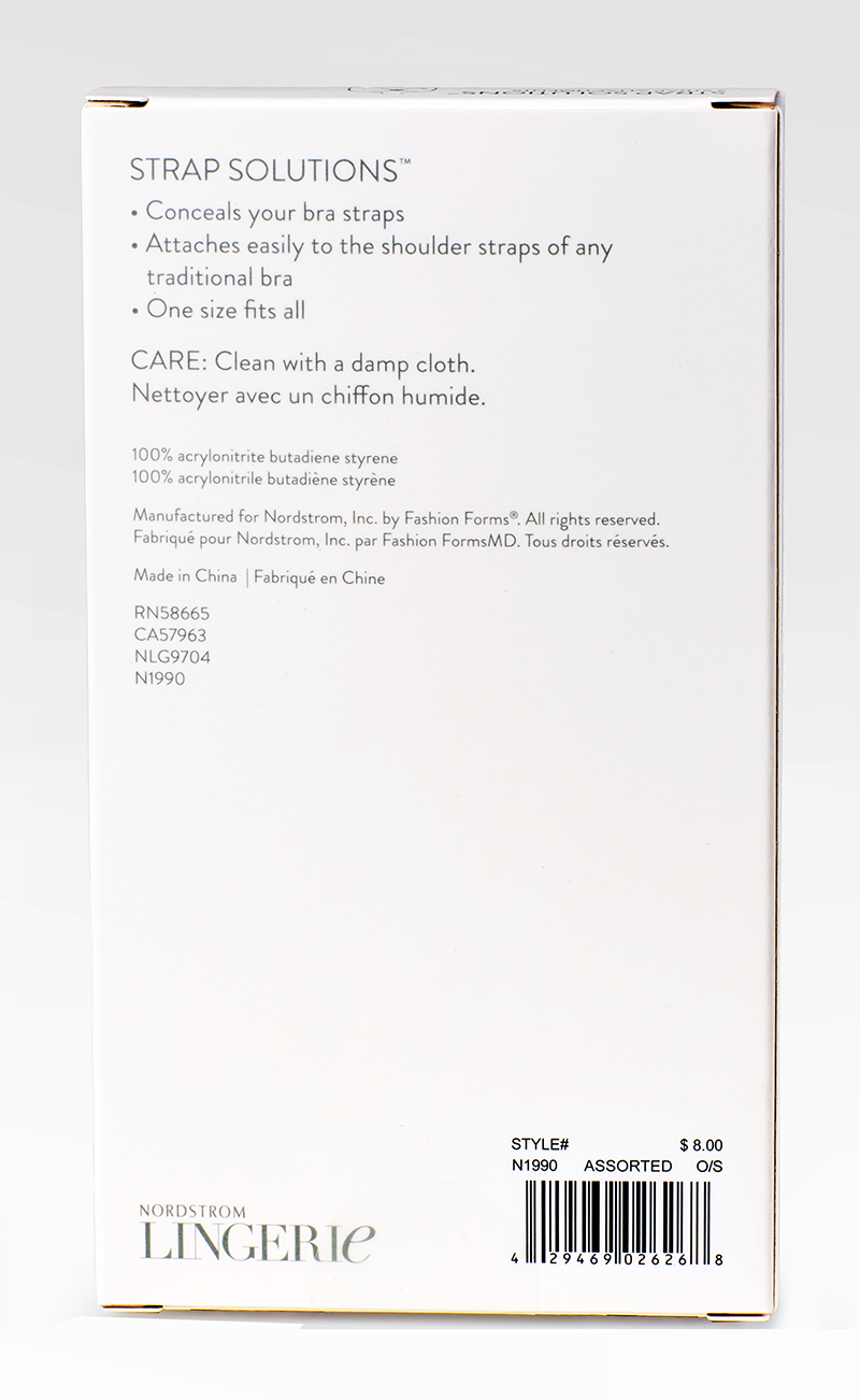 Nordstrom wanted to update their packaging for Fashion Forms products – not just to freshen the design aesthetics, but also to improve their packaging performance. Working together with the creative team at Nordstrom, we created this solution that showcases the product and stands up under moderate to heavy wear, without breaking the bank.