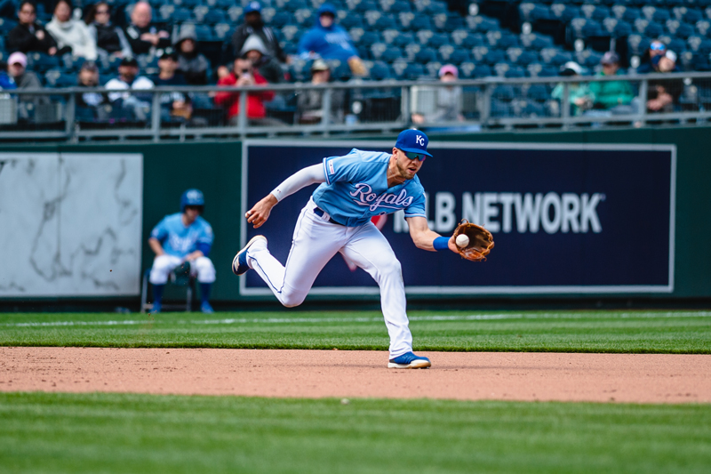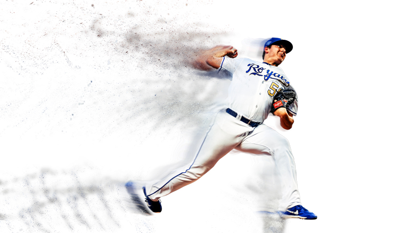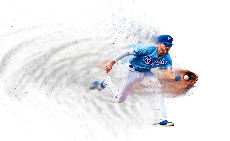 The Royals provided us with some excellent photography from previous games, and I proceeded to find ideal shots of each of the most popular players on the team – Alex Gordon, Jorge Soler, Salvy Perez, Whit Merrifield, Adalberto Modesi, and Brad Keller. The next step was to cut each of those players out of the background in the photos I selected and prepare them for dynamic effects.