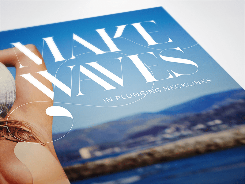 This ad uses photography from a shoot I planned and directed, using wardrobe, accessories, a younger model, and the southern California coastline to highlight the product in a classy and tasteful way to appeal to a broader audience range. I did all of the photo retouching and designed the ad with playfully elegant typography (Port Vintage typeface) to give it a trendy look.