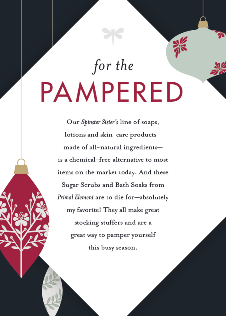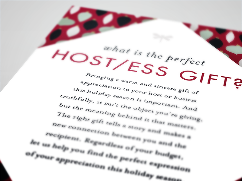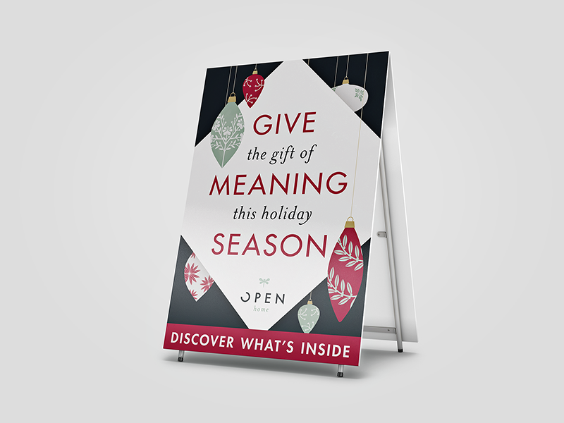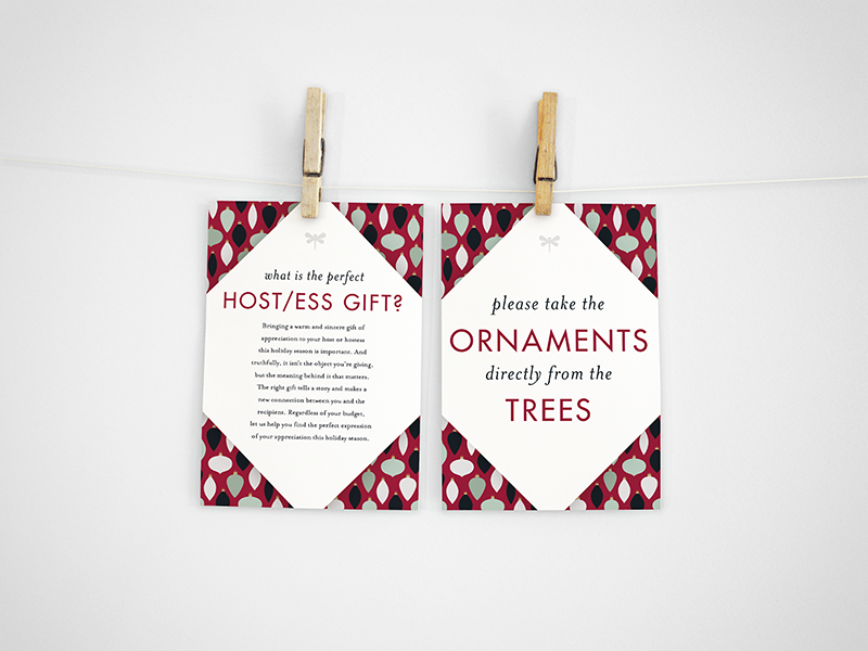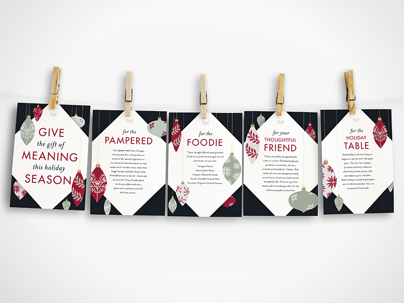 They also wanted a series of small easel-backed signs that they could place among their displays. These signs contained gift suggestions (available at Open Home) for different personality types. These suggestions were made by Mary Schulte, the owner, creator, and curator behind Open Home.