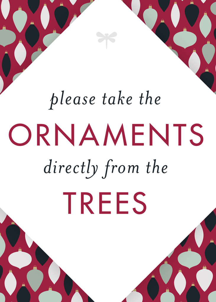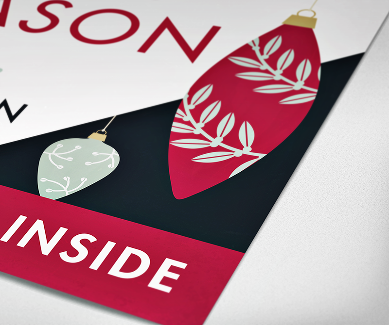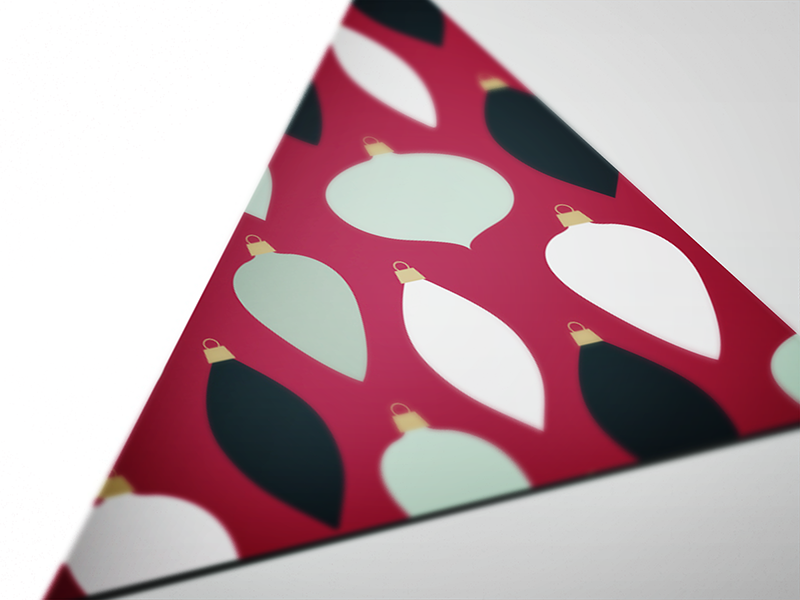 I pulled out elements from the brand’s patterned motif to decorate the ornaments with, and created a contrasting pattern with just the basic ornament shapes.