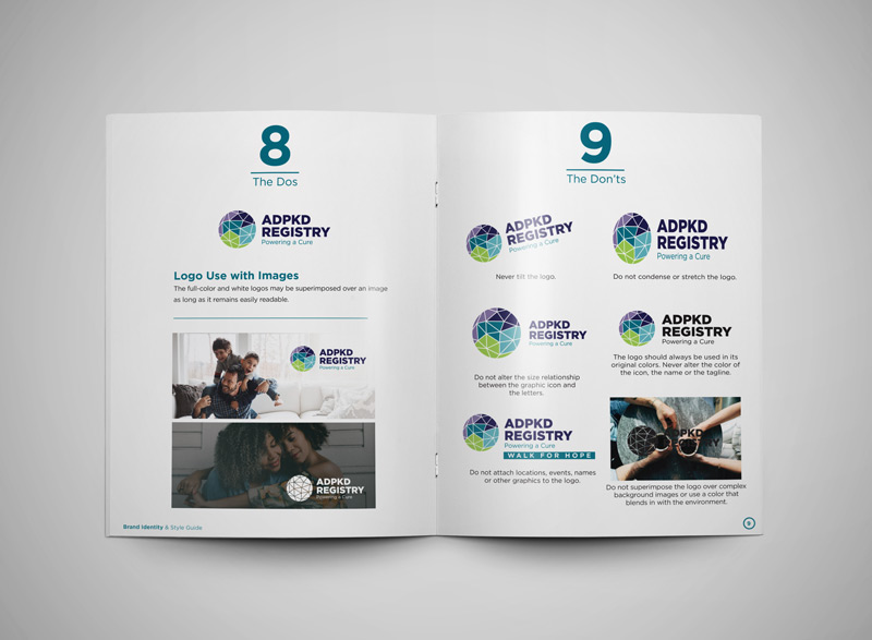 I developed a 12-page branding guide booklet to help the PKD Foundation use the logo correctly in all applications.