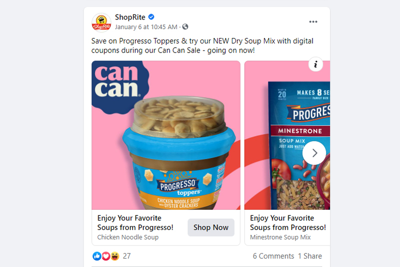 ShopRite’s Facebook page needed a new header for the duration of the sale, so I built a product grid in with the “50 Years of CanCan” logo create the header.