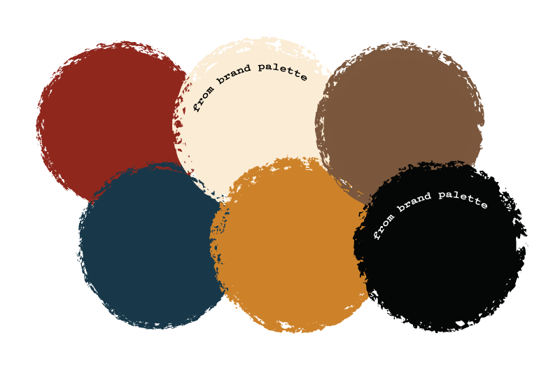 Starting with the base of the brand palette neutrals, we found a selection of classic red, blue, gold, and brown suited our vision.