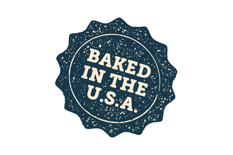 Altered the “Baked in the U.S.A.” lockup and gave it a textured effect to make it resemble a stamp. Chose the color to resemble a blue ribbon, to subtly suggest that this is a “winning product”.